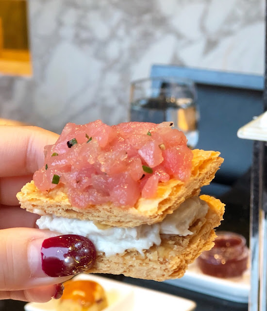 香脆鬆化的千層酥夾住肥美鮮嫩的碎吞拿魚腩,口感好豐富。